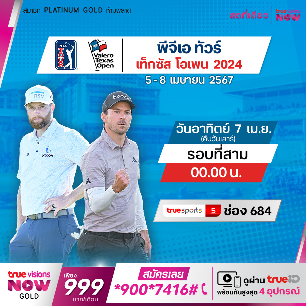 กอล์ฟ พีจีเอ ทัวร์ สัปดาห์นี้ เป็นการแข่งขันในรายการ วาเลโร เท็กซัส โอเพ่น ที่สนาม ทีพีซี ซานอันโตนิโอ รัฐเท็กซัส โดยมีเงินรางวัลรวมให้ชิง กันมากถึง 9,200,000 เหรียญสหรัฐฯ โปรชื่อดังแถวหน้าของวงการ ตบเท้าเข้าร่วมการแข่งขันกันอย่างคับคั่ง เป็นการเตรียมความพร้อมก่อนที่จะเข้าสู่เมเจอร์แรกของปีในสัปดาห์หน้า ชมสด เอ็กซ์คลูซีฟ ครบทุกรอบ ที่เดียวที่ ทรูวิชั่นส์