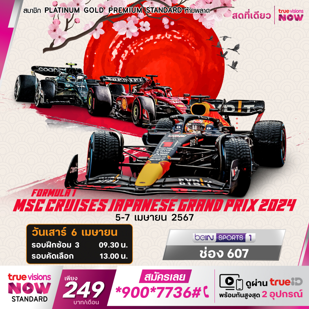 ศึก ฟอร์มูล่า วัน สัปดาห์นี้พบกับรายการ แจแปนีส กรังด์ปรีซ์ จากสังเวียนระดับโลก ซูซูกะ อินเตอร์ชั่นแนล เซอร์กิต ประเทศญี่ปุ่น จับตาดูการ คัมแบ็กของแชมป์โลก 3 สมัย แม็กซ์ เวอร์สแท็ปเพ่น ที่จะกลับมาไล่ล่าตำแหน่งแชมป์อีกครั้ง หลังจากพลาดไปในสนามล่าสุด ชมสด เอ็กซ์คลูซีฟ ทุกรอบการแข่งขัน ที่เดียวที่ ทรูวิชั่นส์