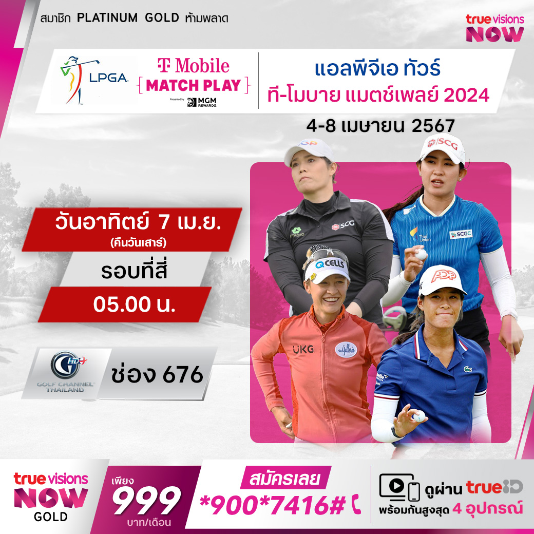 กอล์ฟหญิง แอลพีจีเอ ทัวร์ ฤดูกาล 2024 สัปดาห์นี้ รายการ ที-โมบายล์ แมตช์ เพลย์ ที่สนาม ชาโดว์ ครีก ในลาสเวกัส รัฐเนวาด้า ร่วมเชียร์โปรสาวไทย โปรเมียว ปาจรีย์ อนันต์นฤการ ป้องกันตำแหน่ง พร้อมเพื่อนร่วมชาติอีกหลายคน ชมสด ครบทุกรอบ ที่ ทรูวิชั่นส์