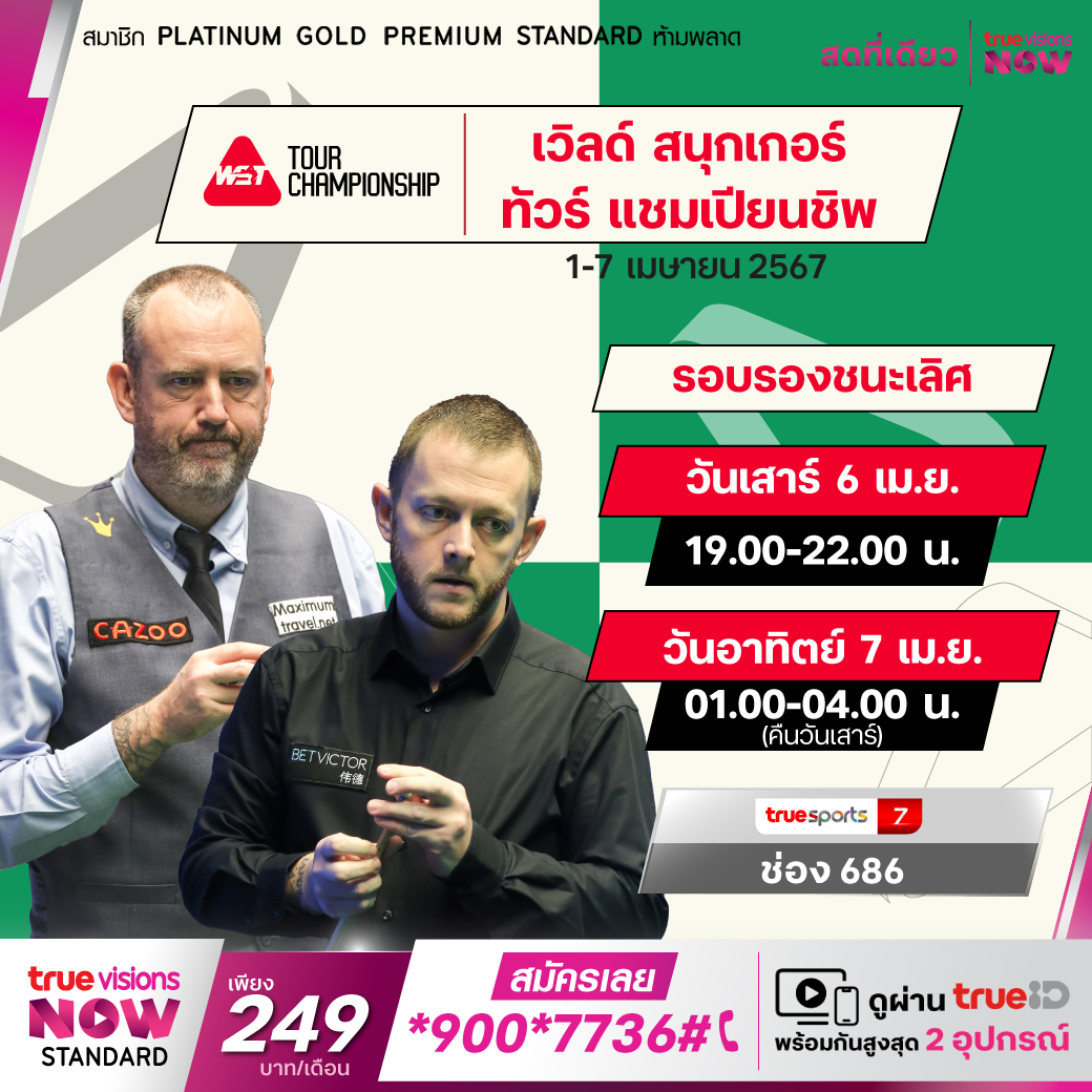 ศึก เวิลด์ สนุกเกอร์ เก็บคะแนนสะสมโลก รายการที่ยิ่งใหญ่อย่าง ทัวร์ แชมเปี้ยนชิพ 2024 เดินทางมาถึงในรอบรองชนะเลิศแล้ว ใครจะเดินหน้าคว้าแชมป์รายการนี้ไปครอง ชมสด เอ็กซ์คลูซีฟ จากสังเวียน แมนเชสเตอร์ เซนทรัล ในเมืองแมนเชสเตอร์ ประเทศอังกฤษ ครบทุกรอบ ที่เดียวที่ ทรูวิชั่นส์