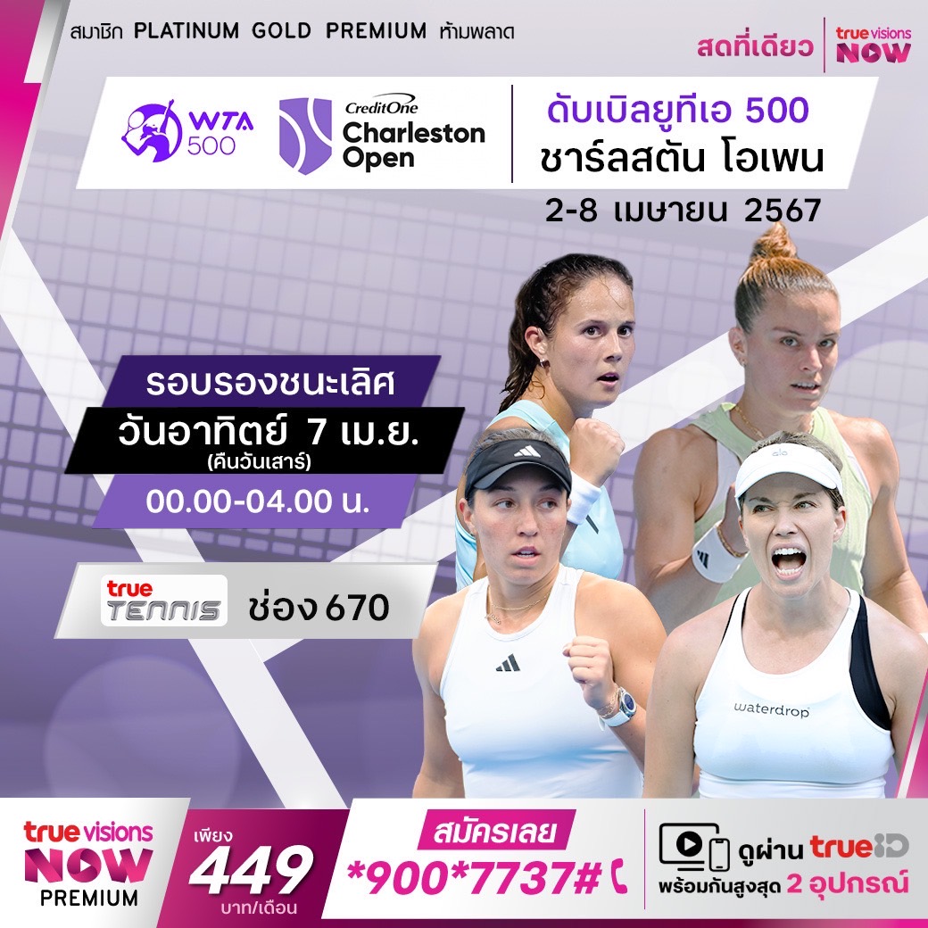 เทนนิสคอร์ทดินรายการเดียว ที่่ใช้คอร์ทดินสีเขียวสำหรับจัดการแข่งขัน กับศึกเทนนิสหญิง ดับเบิ้ลยูทีเอ ทัวร์ รายการ ชาร์ลสตัน โอเพ่น ที่เมือง ชาร์ลสตัน รัฐเซาท์แคโรไรน่า ประเทศสหรัฐอเมริกา เดินทางมาถึงในรอบรองชนะเลิศแล้ว ใครจะคว้าแชมป์ไปครอง ชมสด ที่เดียวที่ ทรูวิชั่นส์