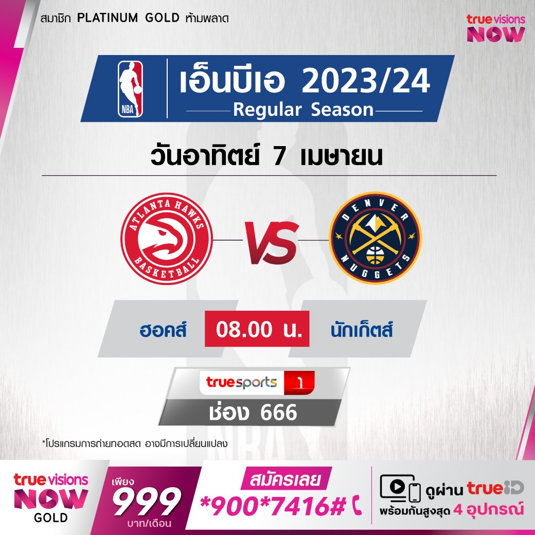 วันอาทิตย์ 7 เม.ย. Hawks Vs Nuggets เวลา 08.00 ทางช่อง TS 1 (666)