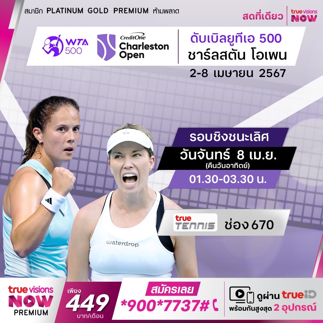 เทนนิสคอร์ทดินรายการเดียว ที่่ใช้คอร์ทดินสีเขียวสำหรับจัดการแข่งขัน กับศึกเทนนิสหญิง ดับเบิ้ลยูทีเอ ทัวร์ รายการ ชาร์ลสตัน โอเพ่น ที่เมือง ชาร์ลสตัน รัฐเซาท์แคโรไรน่า ประเทศสหรัฐอเมริกา เดินทางมาถึงในรอบชิงชนะเลิศแล้ว ใครจะคว้าแชมป์ไปครอง ชมสด ที่เดียวที่ ทรูวิชั่นส์