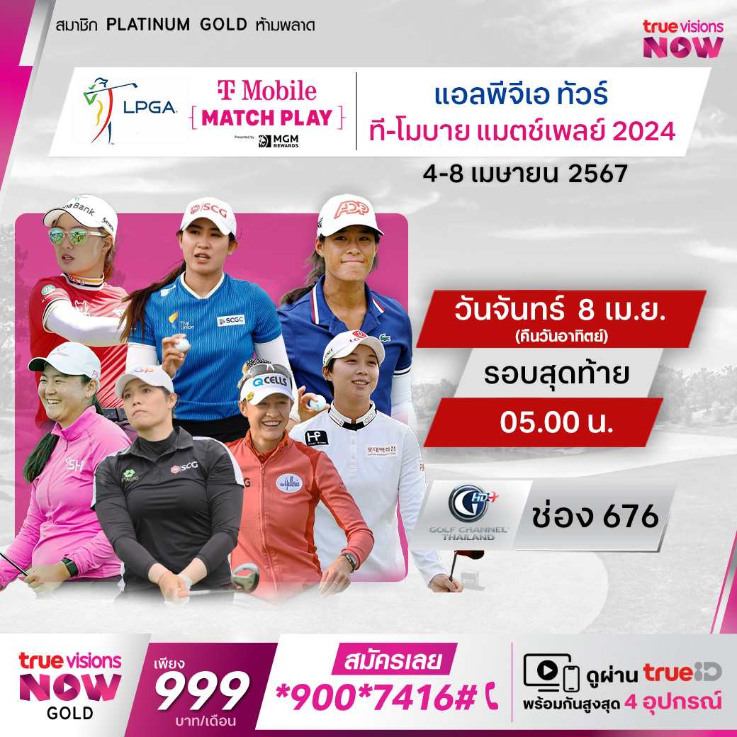 กอล์ฟหญิง แอลพีจีเอ ทัวร์ ฤดูกาล 2024 สัปดาห์นี้ รายการ ที-โมบายล์ แมตช์ เพลย์ ที่สนาม ชาโดว์ ครีก ในลาสเวกัส รัฐเนวาด้า ร่วมเชียร์โปรสาวไทย โปรเมียว ปาจรีย์ อนันต์นฤการ ป้องกันตำแหน่ง พร้อมเพื่อนร่วมชาติอีกหลายคน ชมสด ครบทุกรอบ ที่ ทรูวิชั่นส์