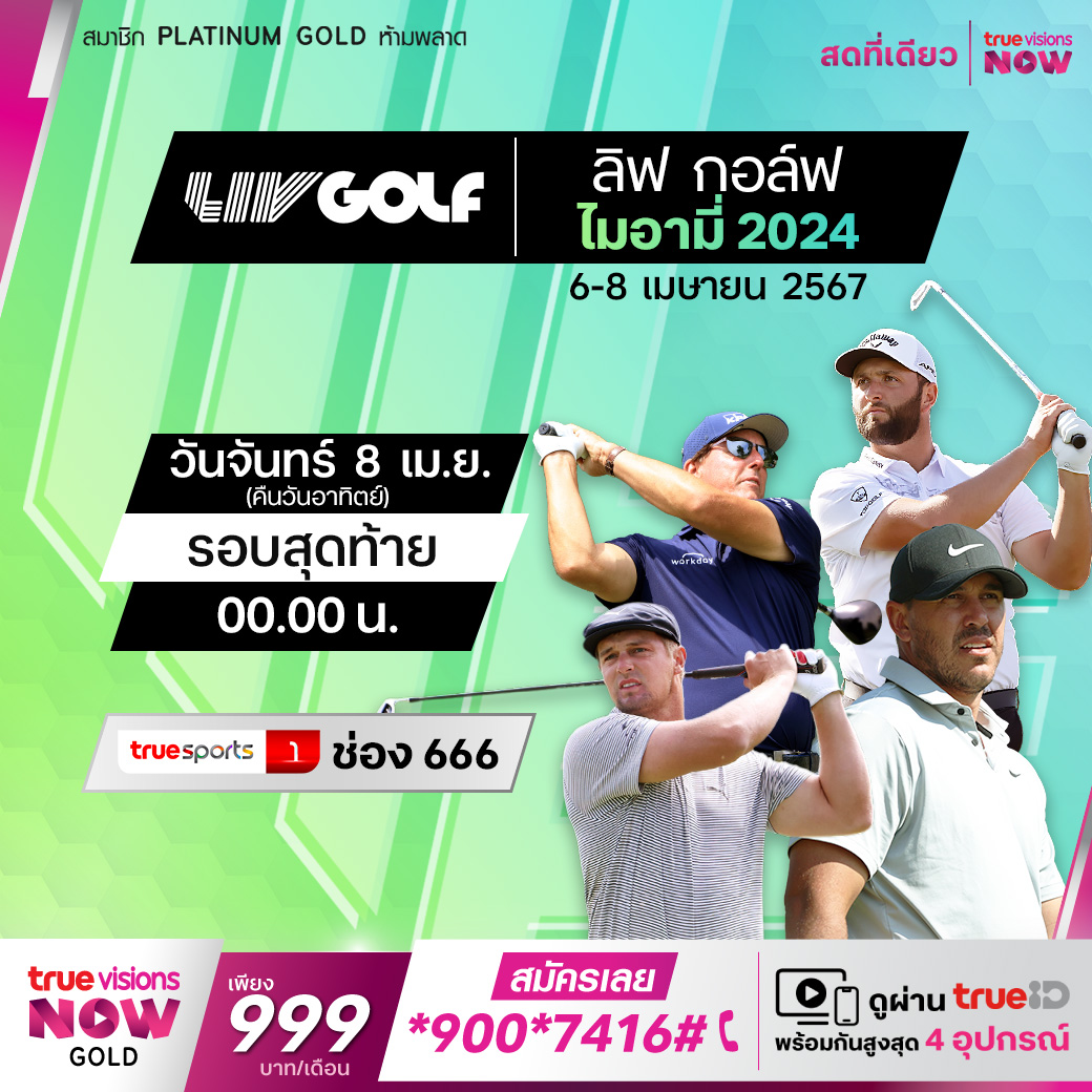 ลิฟ กอล์ฟ ไมอามี่ สนามประลองความเก่งกาจทั้งประเภททีมและประเภทบุคคลจากผลงานของโปรระดับโลก สัปดาห์นี้เป็นโปรแกรมสำคัญ จากสนาม ทรัมป์ เนชั่นแนล โดรัล ในไมอามี่ รัฐฟลอริด้า สด เอ็กซ์คลูซีฟ ครบทุกรอบ ที่เดียวที่ ทรูวิชั่นส์