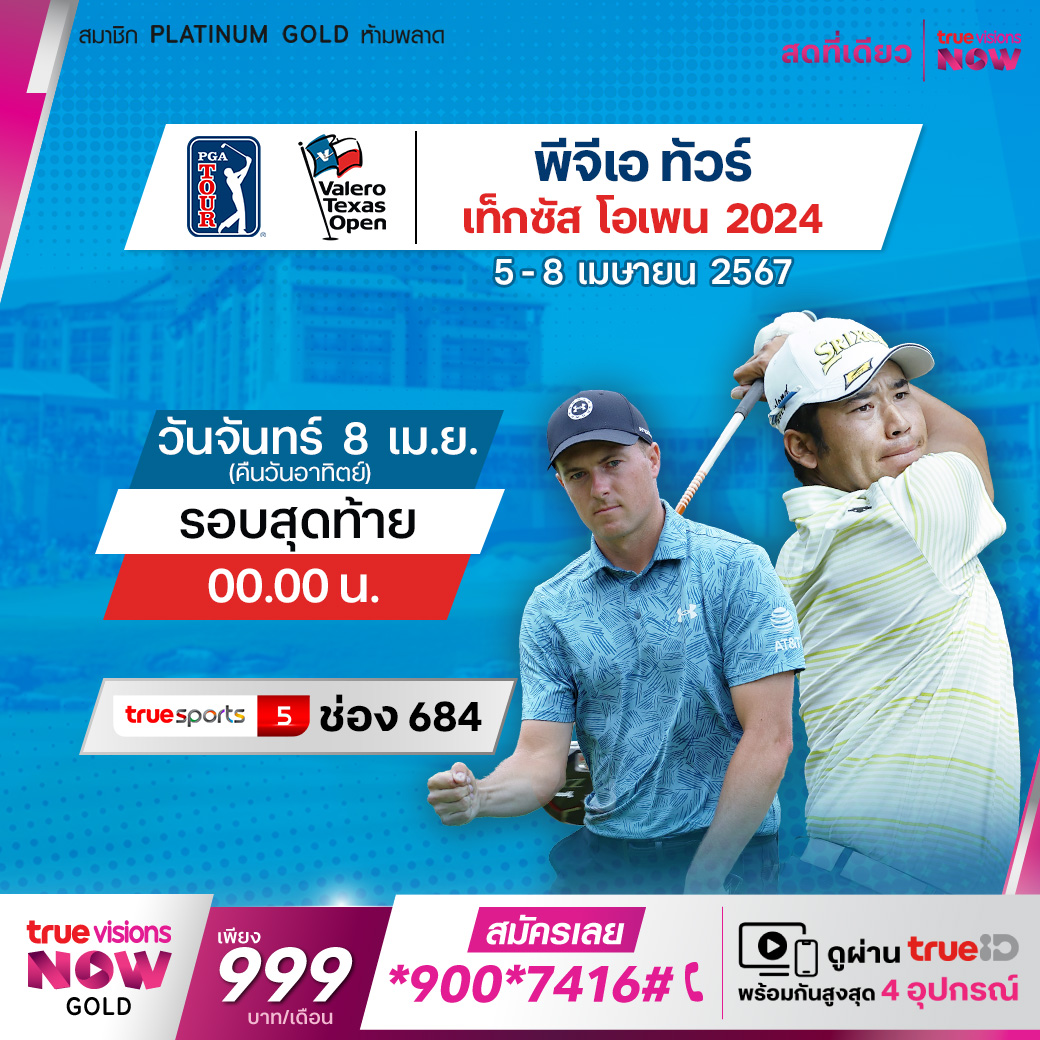 กอล์ฟ พีจีเอ ทัวร์ สัปดาห์นี้ เป็นการแข่งขันในรายการ วาเลโร เท็กซัส โอเพ่น ที่สนาม ทีพีซี ซานอันโตนิโอ รัฐเท็กซัส โดยมีเงินรางวัลรวมให้ชิง กันมากถึง 9,200,000 เหรียญสหรัฐฯ โปรชื่อดังแถวหน้าของวงการ ตบเท้าเข้าร่วมการแข่งขันกันอย่างคับคั่ง เป็นการเตรียมความพร้อมก่อนที่จะเข้าสู่เมเจอร์แรกของปีในสัปดาห์หน้า ชมสด เอ็กซ์คลูซีฟ ครบทุกรอบ ที่เดียวที่ ทรูวิชั่นส์