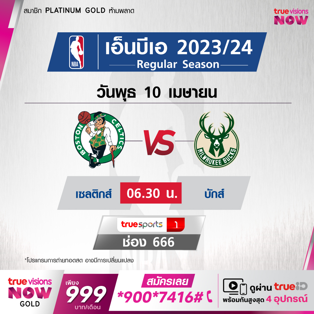 วันพุธ 10 เม.ย. Celtics Vs Bucks เวลา 06.30 ทางช่อง TS 1 (666)