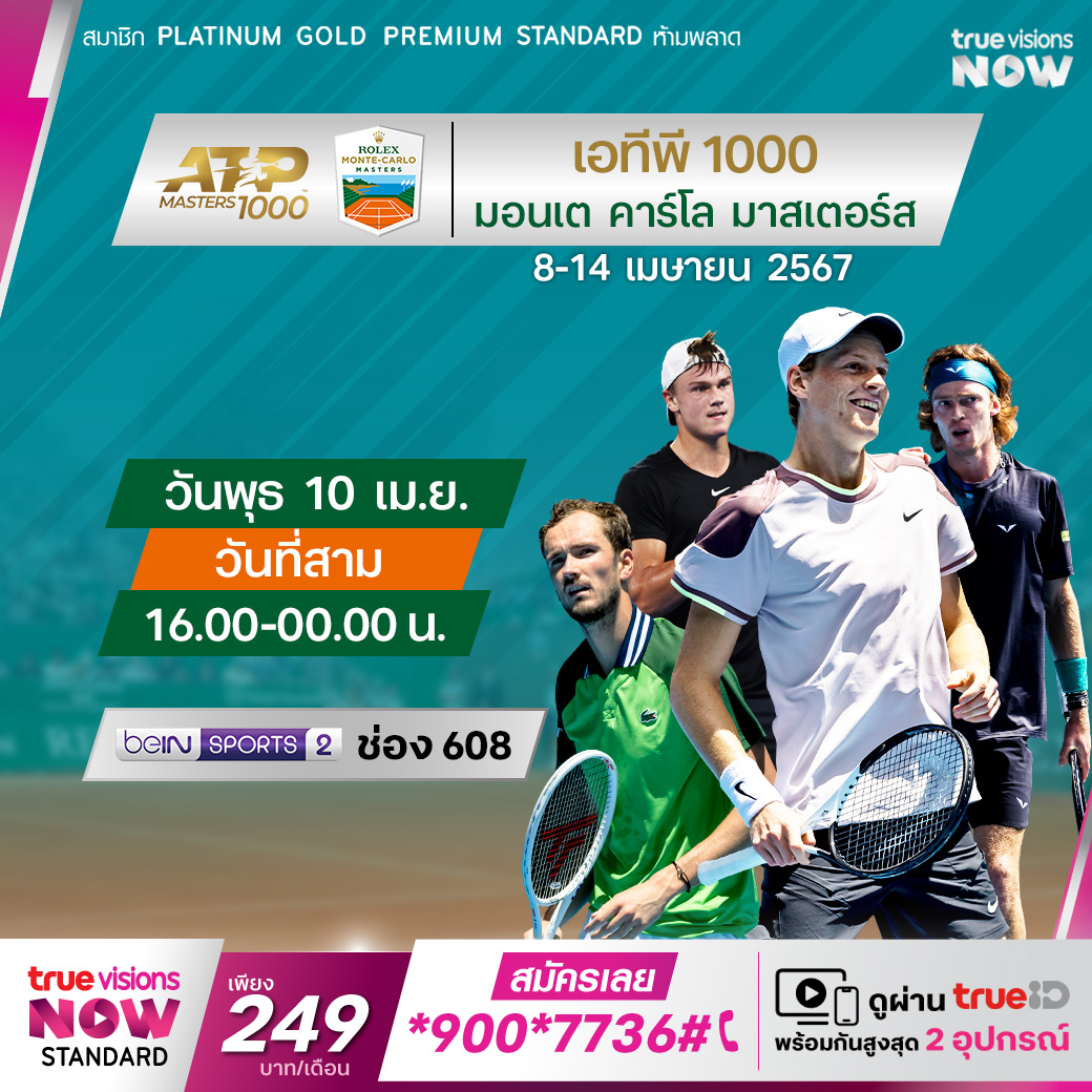เทนนิส เอทีพี ทัวร์ รายการคอร์ทดินรายการใหญ่รายการแรกของปี มอนติ คาร์โล มาสเตอร์ส อัดแน่นไปด้วยดาวดังเข้าร่วมการแข่งขัน ร่วมลุ้นว่า ใครจะคว้าแชมป์รายการนี้ไปครอง ชมสดที่ ทรูวิชั่นส์