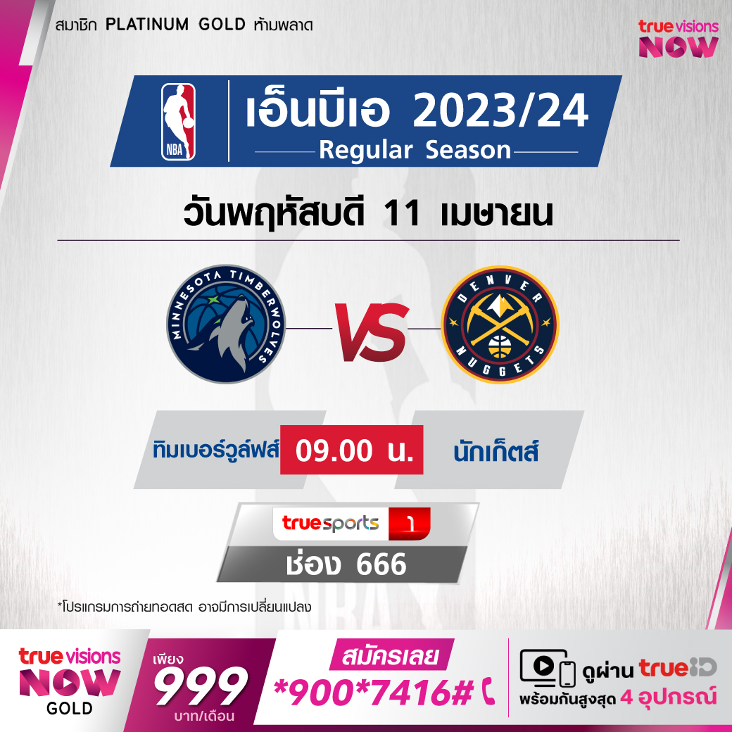 วันพฤหัสบดี 11 เม.ย. Timberwolves Vs Nuggets เวลา 09.00 ทางช่อง TS 1 (666)