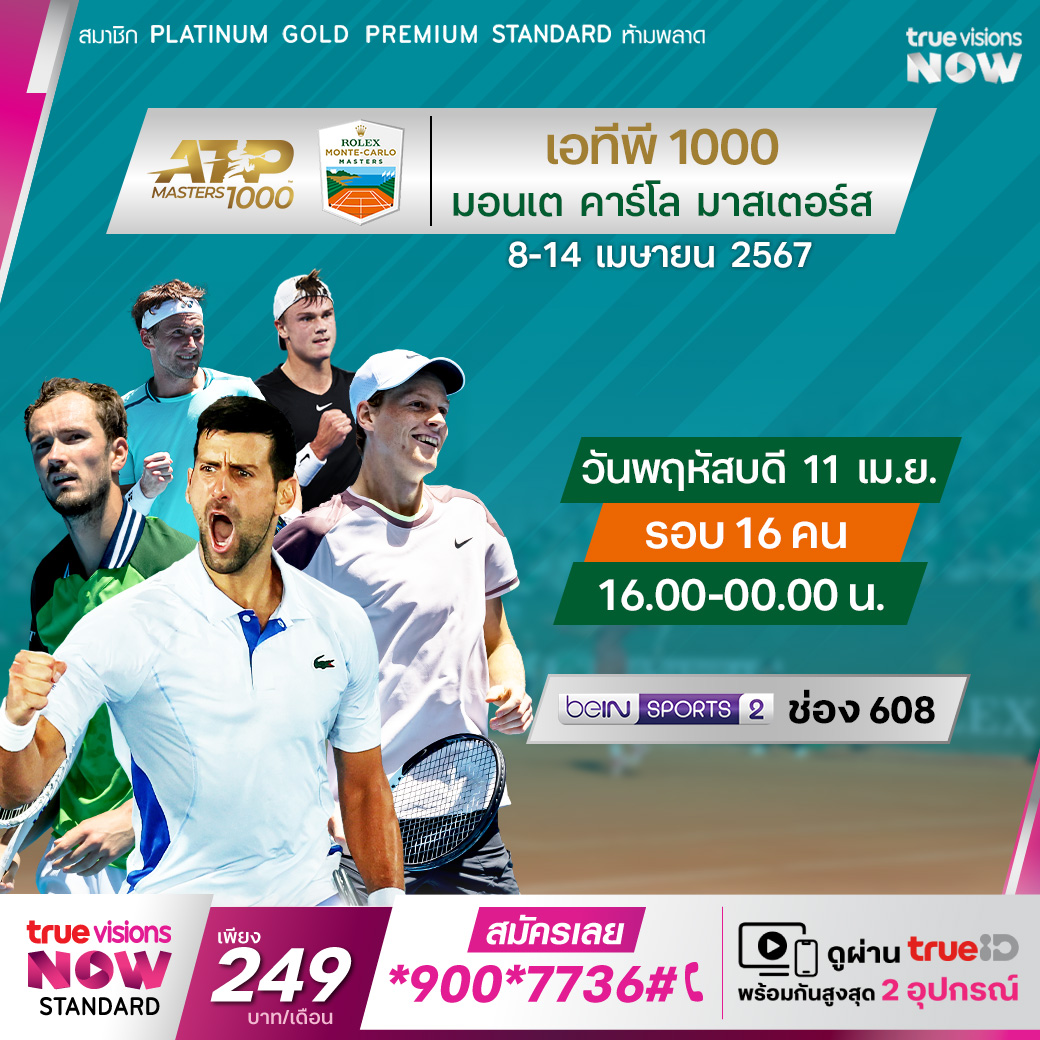เทนนิส เอทีพี ทัวร์ รายการคอร์ทดินรายการใหญ่รายการแรกของปี มอนติ คาร์โล มาสเตอร์ส อัดแน่นไปด้วยดาวดังเข้าร่วมการแข่งขัน ร่วมลุ้นว่า ใครจะคว้าแชมป์รายการนี้ไปครอง ชมสดที่ ทรูวิชั่นส์