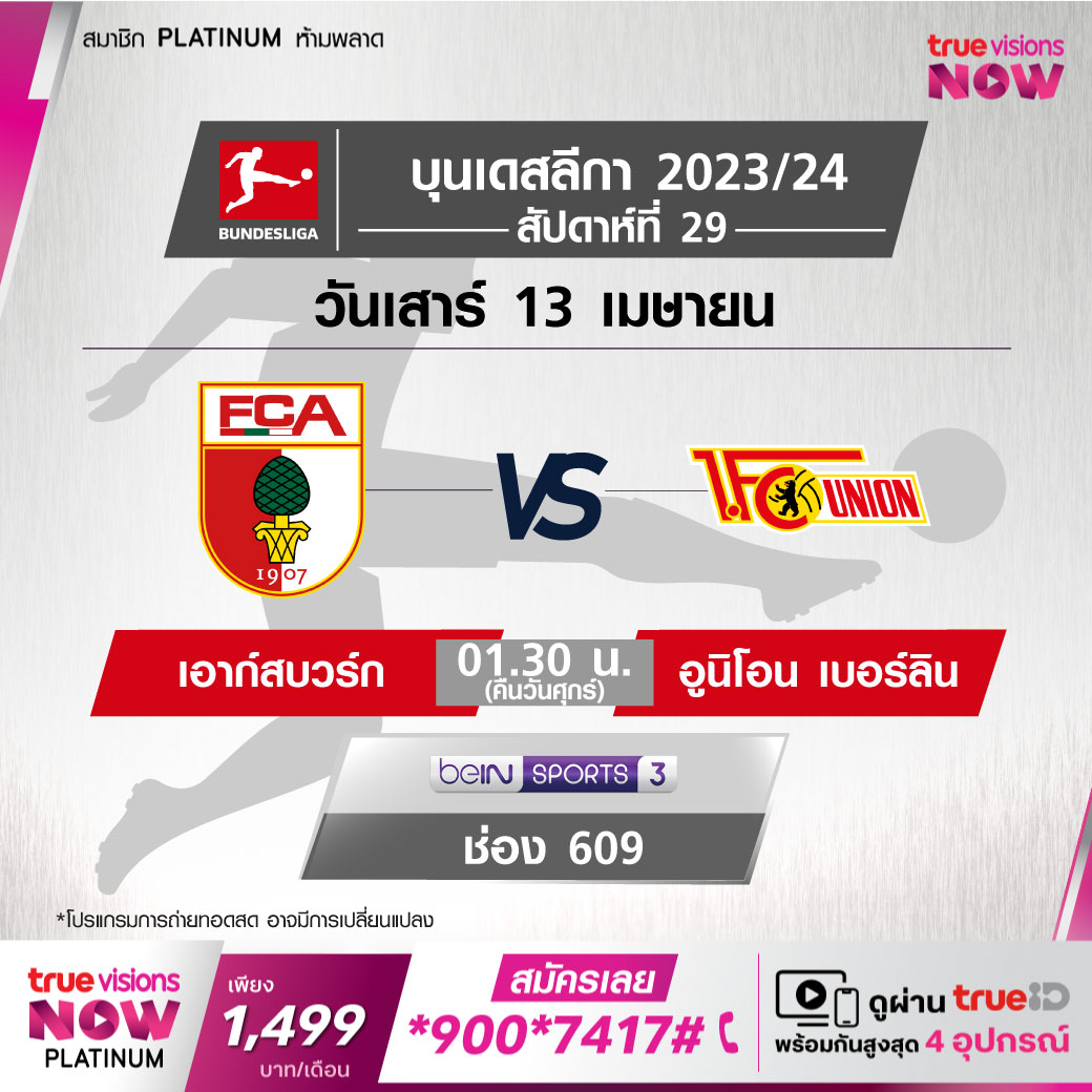 Augsburg vs FC Union เวลา 01.30-03.30 ทางช่อง beIN 3 (609)