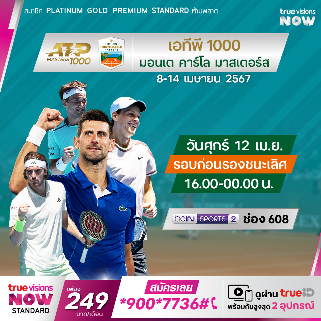 เทนนิส เอทีพี ทัวร์ รายการคอร์ทดินรายการใหญ่รายการแรกของปี มอนติ คาร์โล มาสเตอร์ส อัดแน่นไปด้วยดาวดังเข้าร่วมการแข่งขัน ร่วมลุ้นว่า ใครจะคว้าแชมป์รายการนี้ไปครอง ชมสดที่ ทรูวิชั่นส์