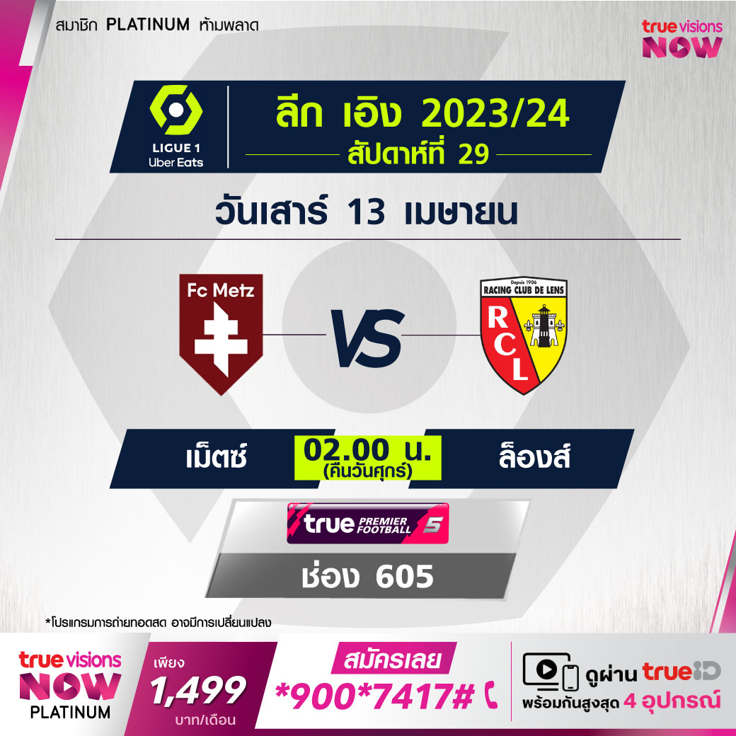 Metz vs Lens เวลา (LIVE) 02.00-04.00 ทางช่อง TPF 5 (605)