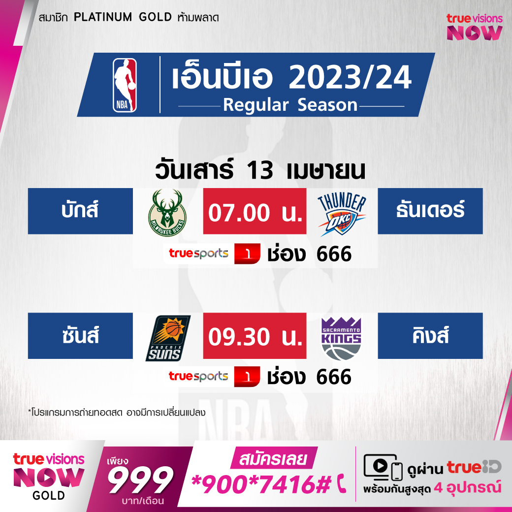 วันเสาร์ 13 เม.ย. Bucks Vs Thunder เวลา 07.00 ทางช่อง TS 1 (666)