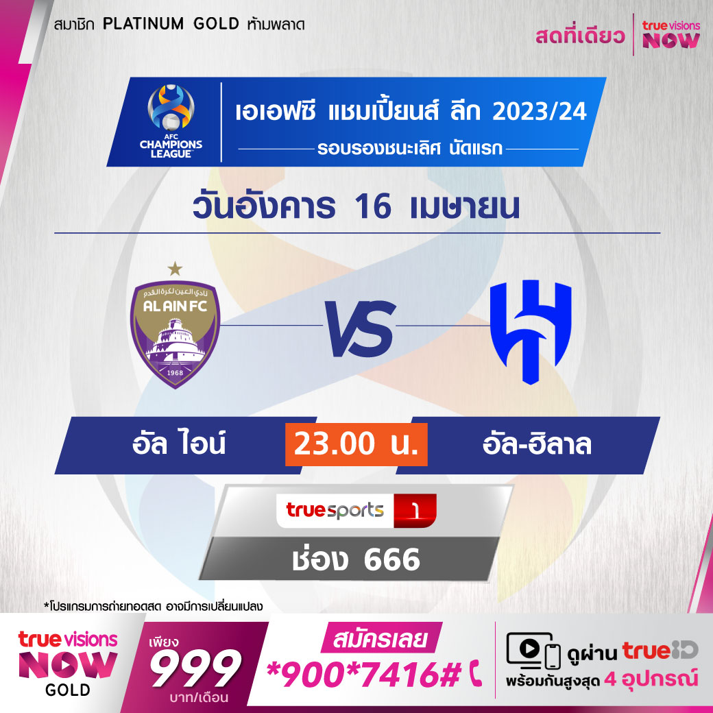 Al Ain vs Al-Hilal เวลา 23.00-01.00 ทางช่อง TS 1 (666)