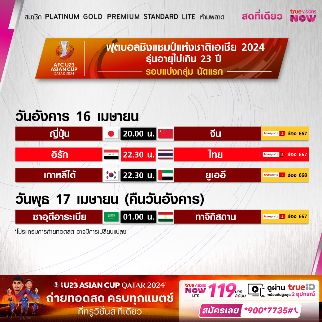 Saudi Arabia vs Tajikistan เวลา 01.00-03.00 ทางช่อง TS 2 (667)