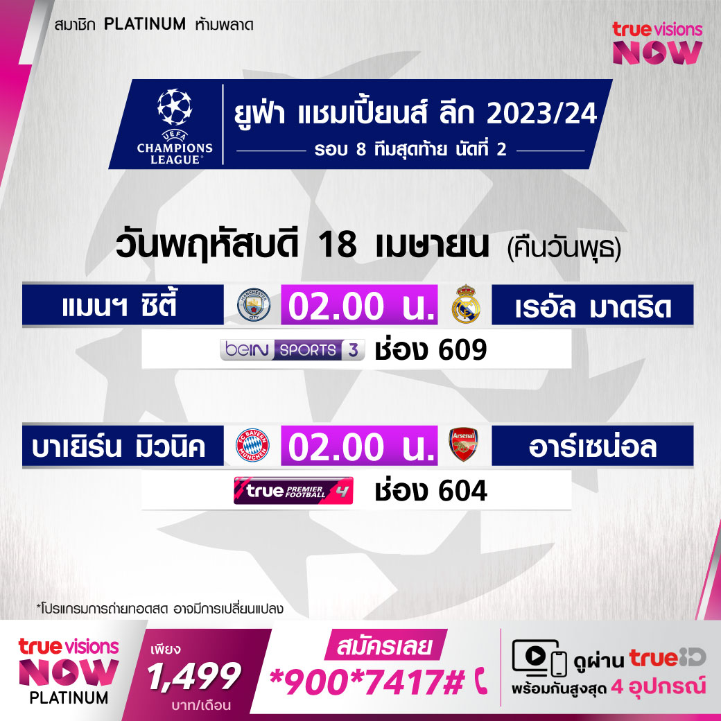 Bayern vs Arsenal เวลา 02.00-04.00 ทางช่อง TPF 4 (604)