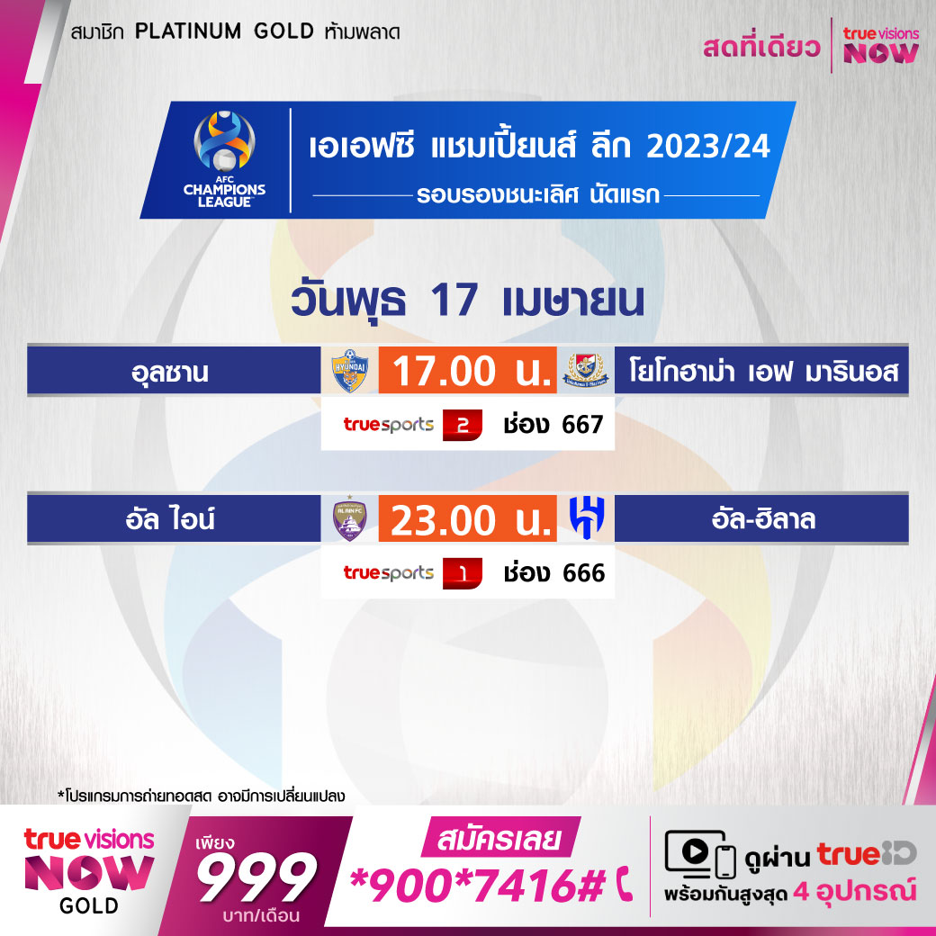 Al Ain vs Al-Hilal เวลา 23.00-01.00 ทางช่อง TS 1 (666)