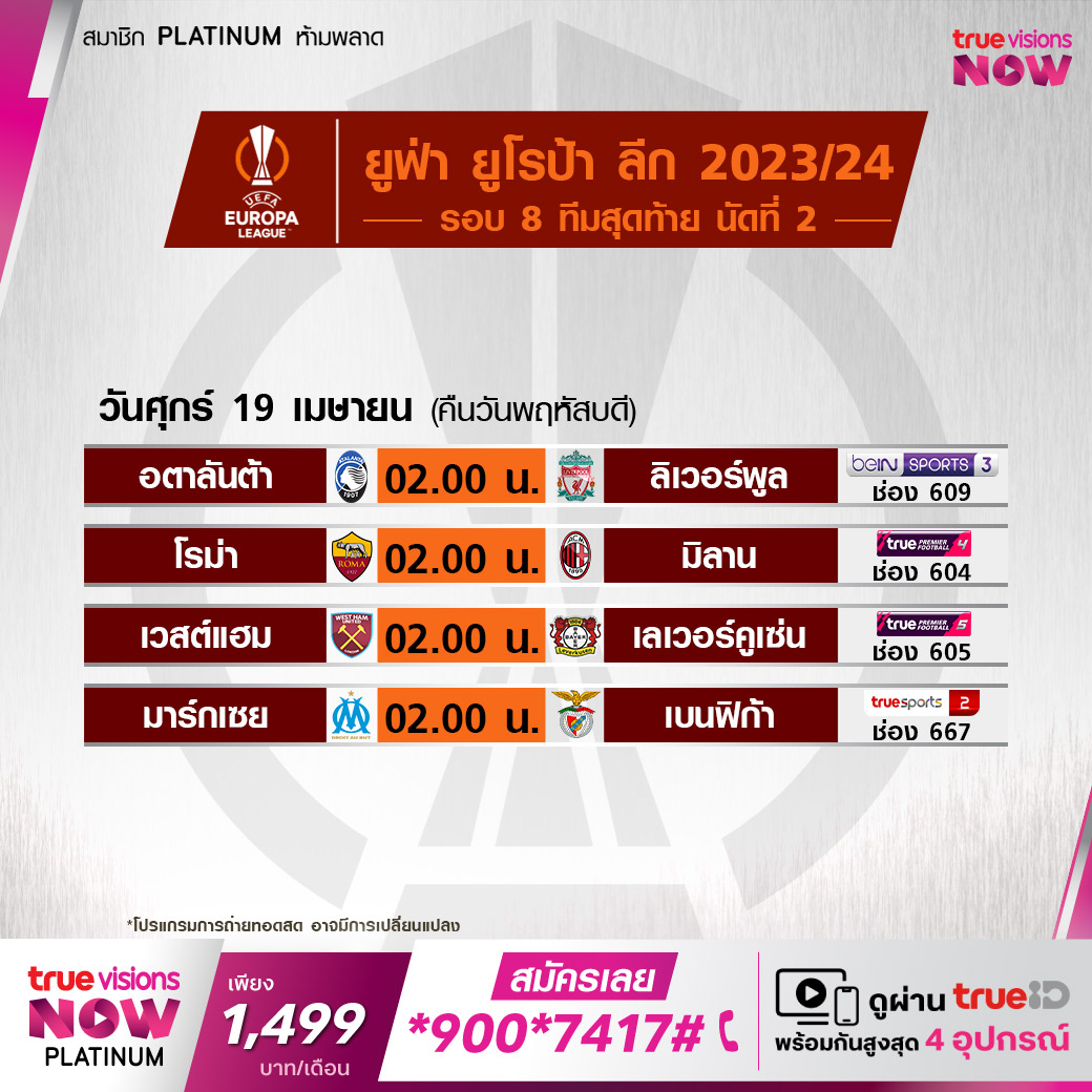 West Ham vs Leverkusen เวลา 02.00-04.00 ทางช่อง TPF 5 (605)
