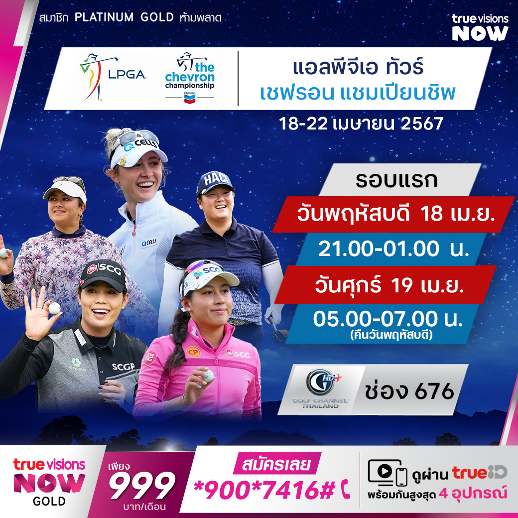 กอล์ฟหญิง แอลพีจีเอ ทัวร์ รายการ เดอะ เชฟรอน แชมเปี้ยนชิพ 2024 ร่วมลุ้นและเชียร์โปรสาวไทยให้สานฝัน ฝ่าวงล้อมคู่แข่ง เพื่อคว้าโทรฟี่อันทรงเกียรติและเงินรางวัลรวมมากถึง 5,200,000 เหรียญสหรัฐฯ สด ครบทุกรอบ จากสนาม เดอะ คลับ แอท คาร์ลตัน วู้ดส์ ใน เดอะ วู้ดแลนด์ เท็กซัส ชมสด ครบทุกรอบ ที่ ทรูวิชั่นส์