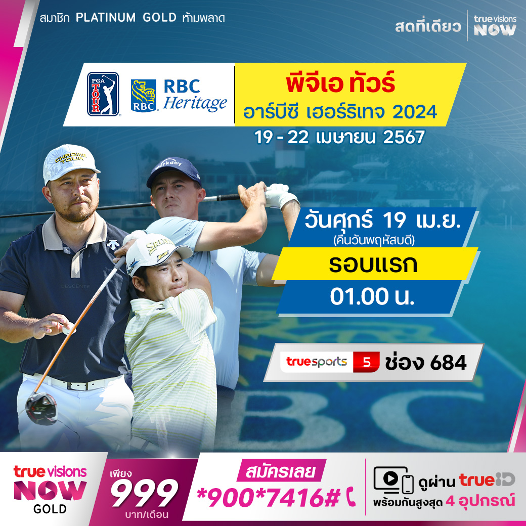 กอล์ฟ พีจีเอทัวร์ สัปดาห์นี้ พบกับรายการ อาร์บีซี เฮอร์ริเทจ ที่สนาม ฮาเบอร์ ทาวน์ กอล์ฟ ลิงค์ส ใน ฮิลตัน เฮด ไอส์แลนด์ รัฐเซาธ์ แคโรไลน่า โปรกอล์ฟระดับโลกมาร่วมแข่งขัน ชิงเงินรางวัลมหาศาล 20 ล้านเหรียญสหรัฐฯ สด เอ็กซ์คลูซีฟ ครบทุกรอบ ที่เดียวที่ ทรูวิชั่นส์