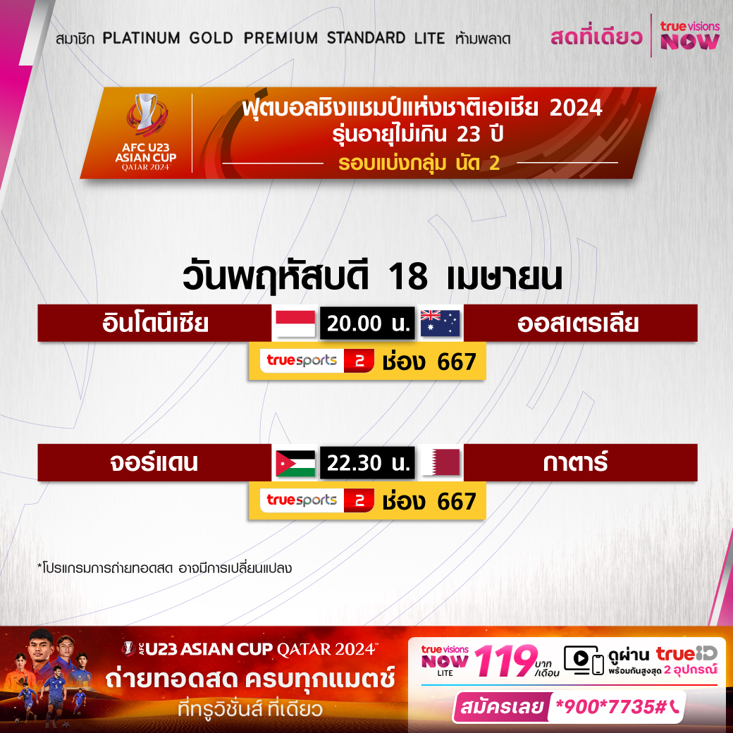 Indonesia vs Australia เวลา 20.00-22.00 ทางช่อง TS 2 (667)