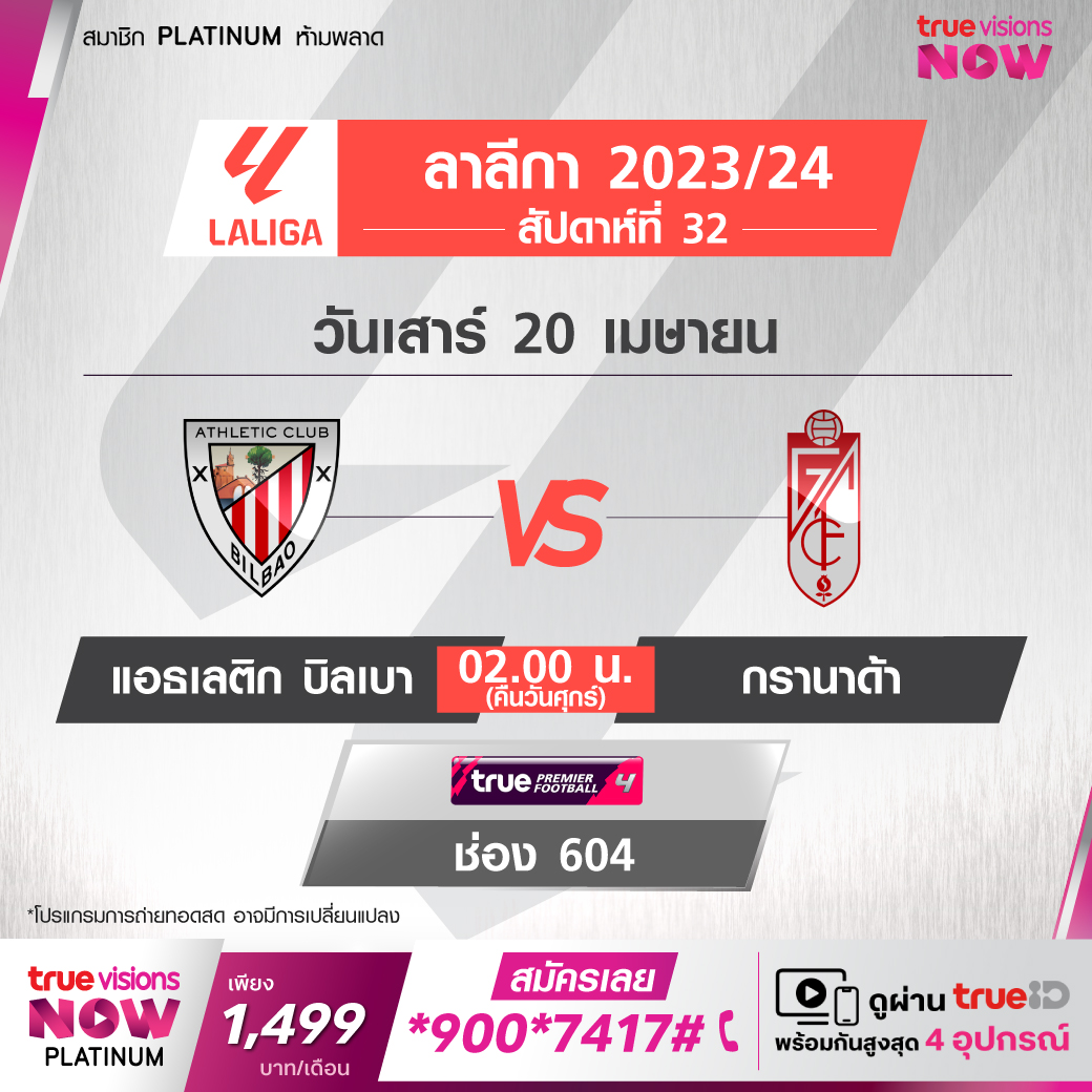 Athletic vs Granada เวลา 02.00-04.00 ทางช่อง TPF 4 (604)
