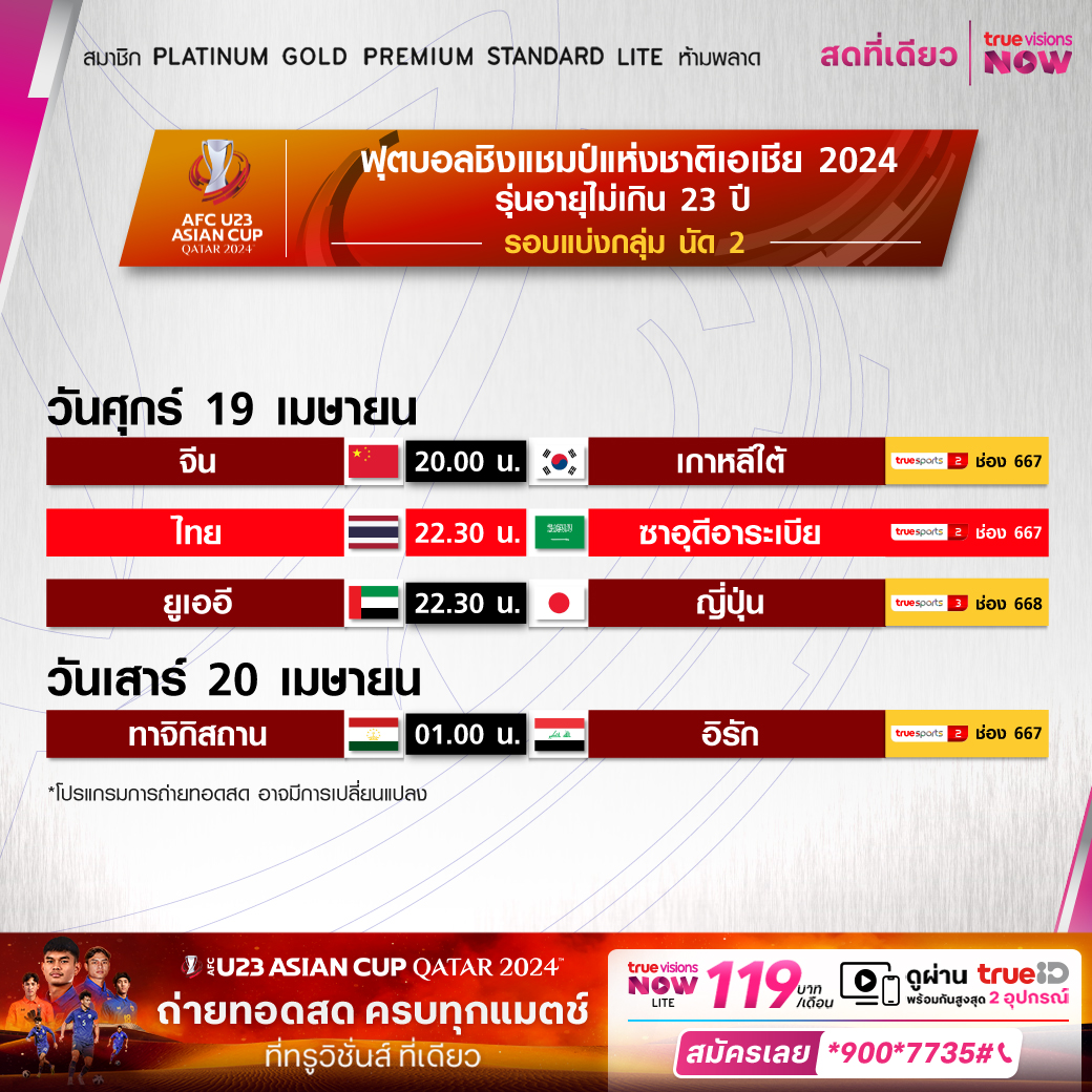 Thailand vs Saudi Arabia เวลา 22.30-00.30 ทางช่อง TS 2 (667)