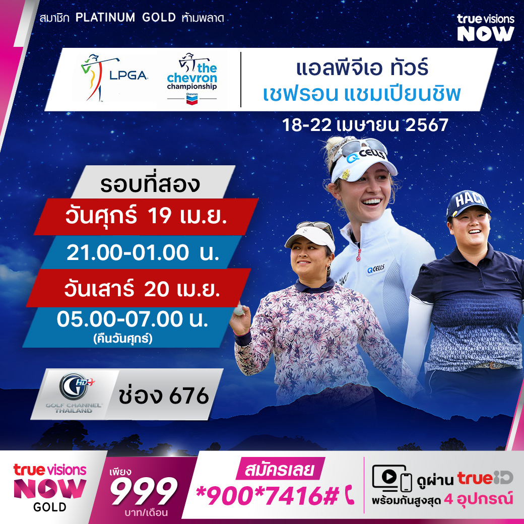 กอล์ฟหญิง แอลพีจีเอ ทัวร์ รายการ เดอะ เชฟรอน แชมเปี้ยนชิพ 2024 ร่วมลุ้นและเชียร์โปรสาวไทยให้สานฝัน ฝ่าวงล้อมคู่แข่ง เพื่อคว้าโทรฟี่อันทรงเกียรติและเงินรางวัลรวมมากถึง 5,200,000 เหรียญสหรัฐฯ สด ครบทุกรอบ จากสนาม เดอะ คลับ แอท คาร์ลตัน วู้ดส์ ใน เดอะ วู้ดแลนด์ เท็กซัส ชมสด ครบทุกรอบ ที่ ทรูวิชั่นส์