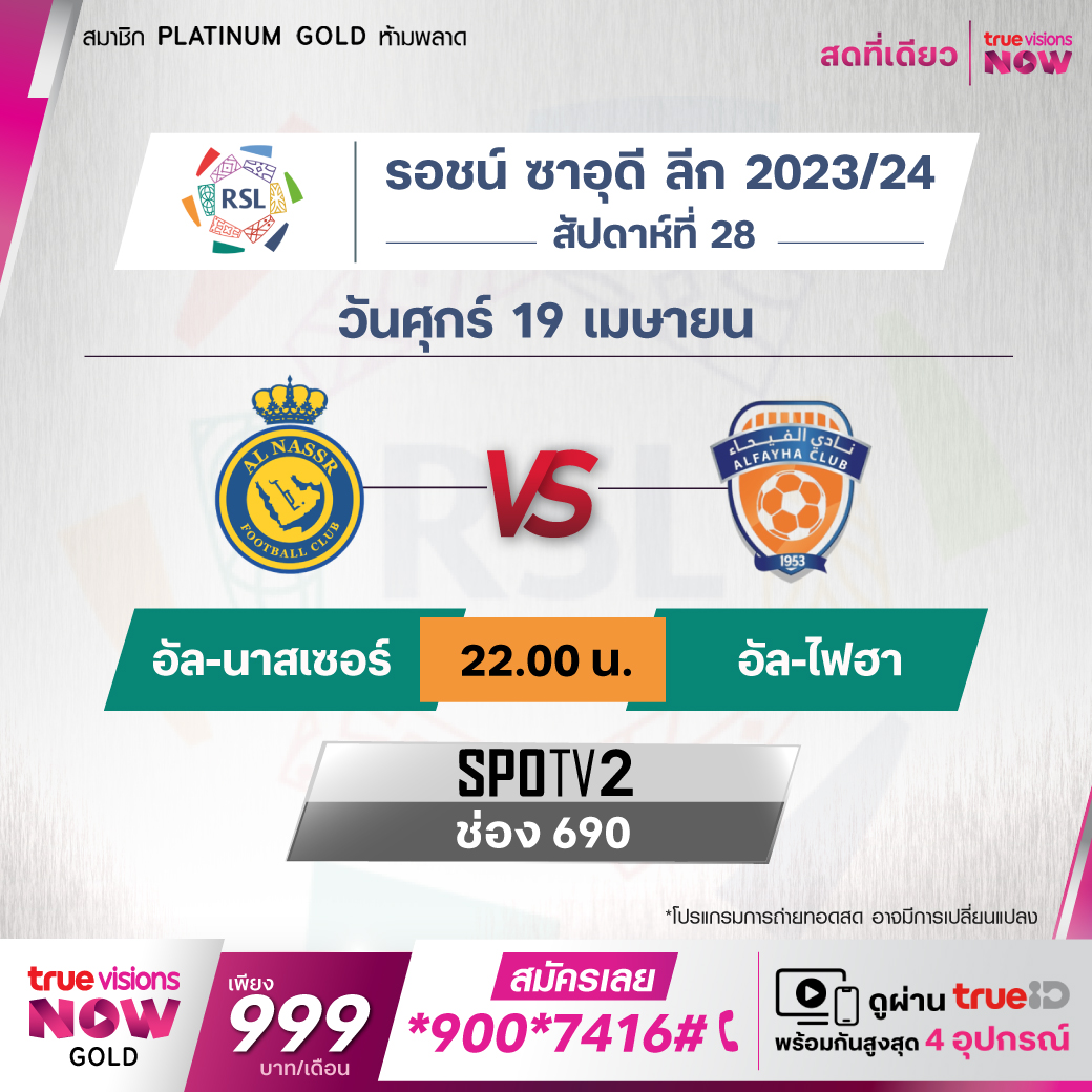 Al-Nassr vs Al-Fayha เวลา 22.00-00.00 ทางช่อง SPOTV2 (690)