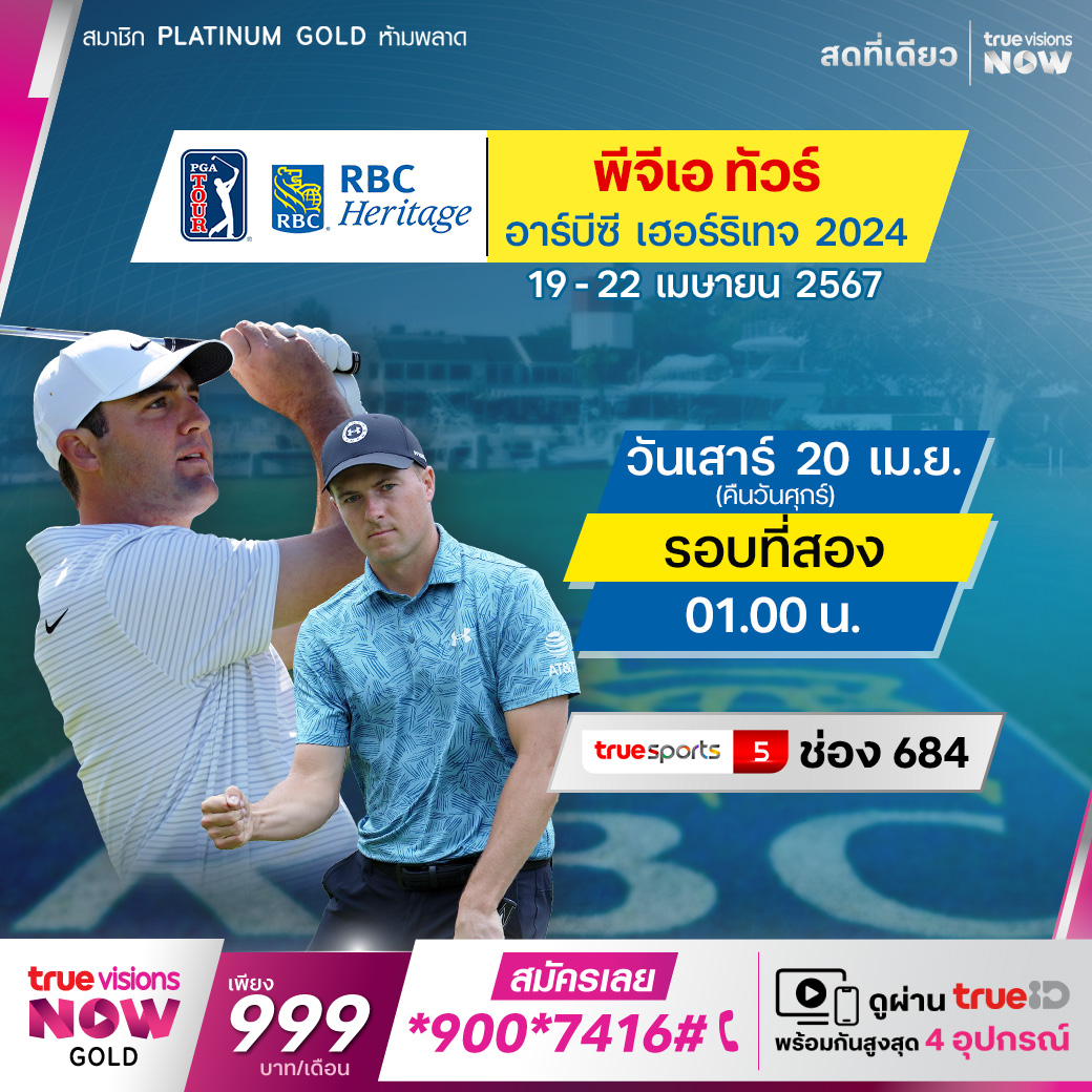 กอล์ฟ พีจีเอทัวร์ สัปดาห์นี้ พบกับรายการ อาร์บีซี เฮอร์ริเทจ ที่สนาม ฮาเบอร์ ทาวน์ กอล์ฟ ลิงค์ส ใน ฮิลตัน เฮด ไอส์แลนด์ รัฐเซาธ์ แคโรไลน่า โปรกอล์ฟระดับโลกมาร่วมแข่งขัน ชิงเงินรางวัลมหาศาล 20 ล้านเหรียญสหรัฐฯ สด เอ็กซ์คลูซีฟ ครบทุกรอบ ที่เดียวที่ ทรูวิชั่นส์