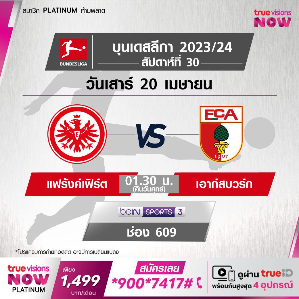 Frankfurt vs Augsburg เวลา 01.30-03.30 ทางช่อง beIN 3 (609)