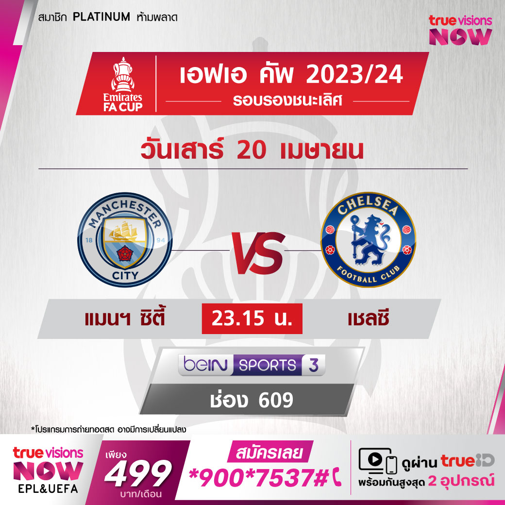 Man City vs Chelsea เวลา 23.15-01.15 ทางช่อง beIN 3 (609)
