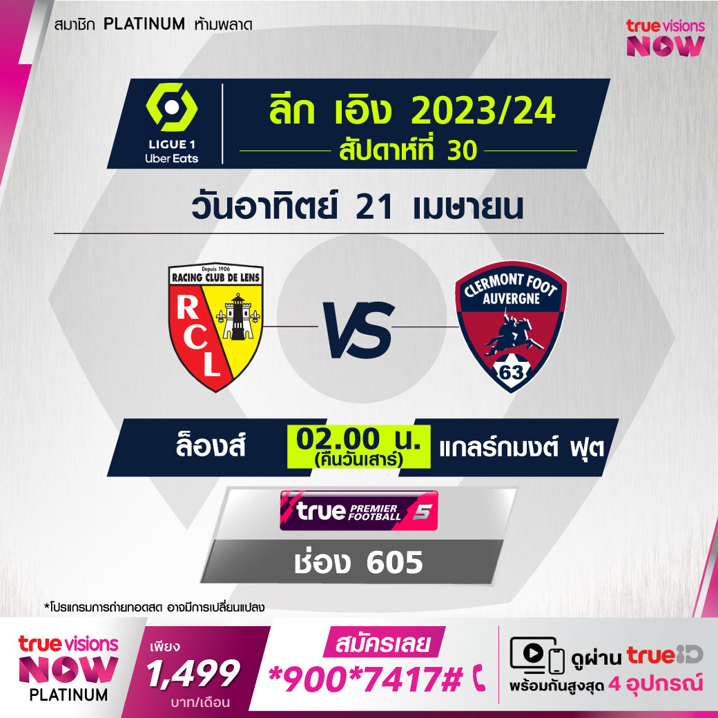 Lens vs Clermont เวลา 02.00-04.00 ทางช่อง TPF 5 (605)