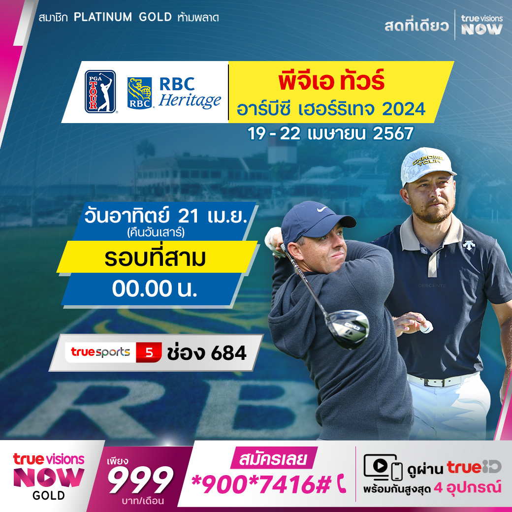 กอล์ฟ พีจีเอทัวร์ สัปดาห์นี้ พบกับรายการ อาร์บีซี เฮอร์ริเทจ ที่สนาม ฮาเบอร์ ทาวน์ กอล์ฟ ลิงค์ส ใน ฮิลตัน เฮด ไอส์แลนด์ รัฐเซาธ์ แคโรไลน่า โปรกอล์ฟระดับโลกมาร่วมแข่งขัน ชิงเงินรางวัลมหาศาล 20 ล้านเหรียญสหรัฐฯ สด เอ็กซ์คลูซีฟ ครบทุกรอบ ที่เดียวที่ ทรูวิชั่นส์