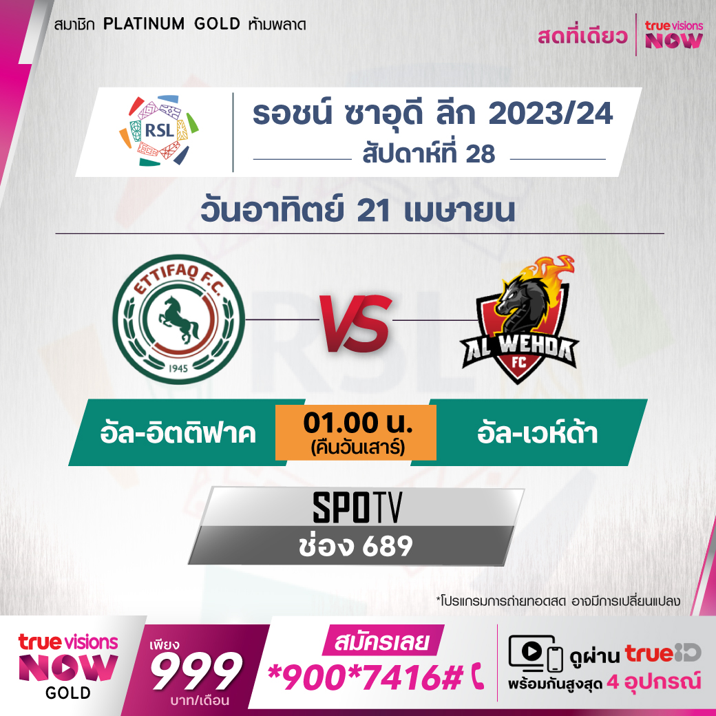 Al-Ettifaq vs Al-Wehda เวลา 01.00-03.00 ทางช่อง SPOTV (689)