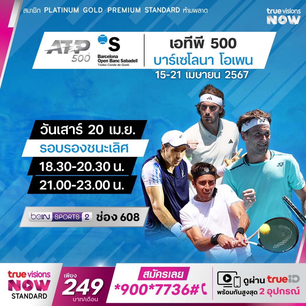เทนนิส เอทีพี ทัวร์ รายการใหญ่จากเมืองบาร์เซโลน่า ประเทศสเปน กับรายการ บาร์เซโลน่า โอเพ่น มาถึงในรอบรองชนะเลิศแล้ว ร่วมลุ้นกันว่าใครจะคว้าแชมป์ไปครอง ชมสด ที่ ทรูวิชั่นส์