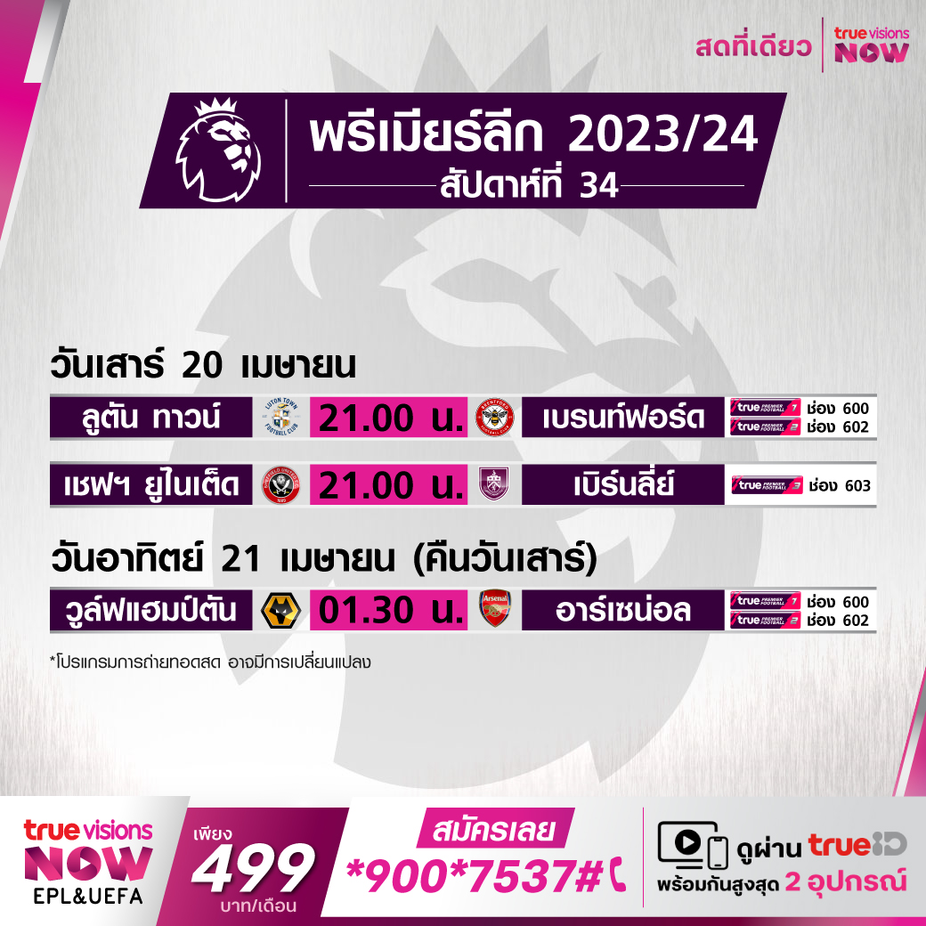 Luton Town vs Brentford เวลา 21:00 - 23:00 ทางช่อง TPF 1(600) / TPF 2 (602)