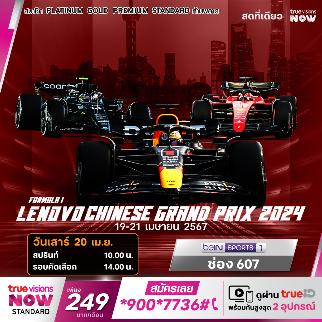ศึกฟอร์มูล่าวัน รายการ ไชนีส กรังด์ปรีซ์ จากสนาม เซี่ยงไฮ้ อินเตอร์เนชั่นแนล เซอร์กิต ประเทศจีน ติดตามกันว่าใครจะมาหยุดยั้งฟอร์มโหดของ แม็กซ์ เวอร์สแท็ปเพ่น และทีมเร้ดบูลส์ ได้ ชมสด เอ็กซ์คลูซีฟ ทุกช่วงการแข่งขัน ที่เดียว ที่ ทรูวิชั่นส์