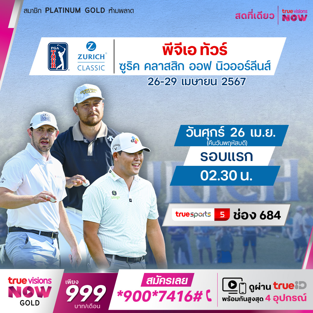 กอล์ฟ พีจีเอ ทัวร์ รายการ ซูริค คลาสสิก ออฟ นิวออร์ลีนส์ ที่เป็นการแท็คทีม 2 คน สู้กันแบบแพ็คคู่ นับคะแนนแตกต่างกับทัวร์ทั่วๆ ไป จากสนาม ทีพีซี หลุยเซียน่า เมืองอวอนเดล รัฐหลุยเซียน่า ชิงเงินรางวัลรวม 8.9 ล้านเหรียญสหรัฐฯ ทีมไหนจะได้ชูถ้วยแชมป์ ชมสด เอ็กซ์คลูซีฟ ครบทุกรอบ ที่เดียวที่ ทรูวิชั่นส์