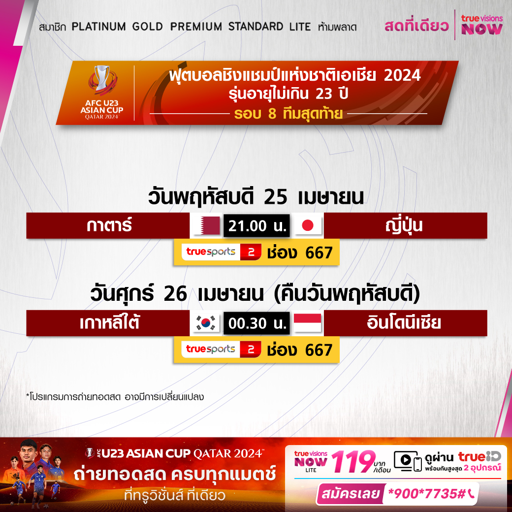 Qatar vs Japan เวลา 21.00-23.00 ทางช่อง TS 2 (667)