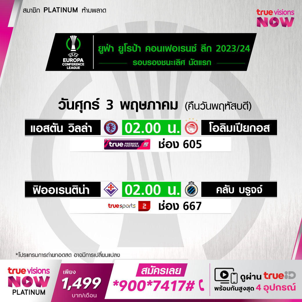 Fiorentina vs Club Brugge เวลา 02.00-04.00 ทางช่อง TS 2 (667)