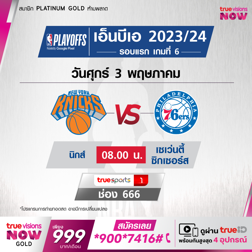 วันศุกร์ 3 พ.ค. Knicks Vs 76ers เวลา 08.00 ทางช่อง TS 1 (666)