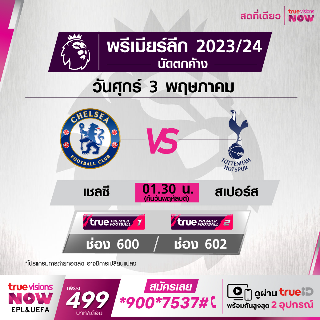 Chelsea vs Tottenham Hotspur เวลา 01:30 - 03:30 ทางช่อง TPF 1(600) / TPF 2 (602)