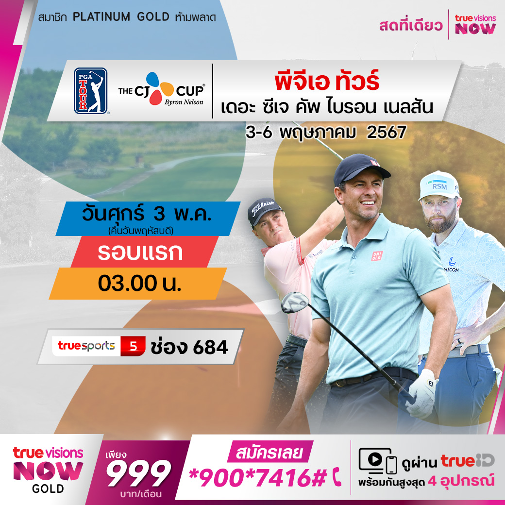 กอล์ฟ พีจีเอ ทัวร์ สัปดาห์นี้ไปกันที่รายการ เดอะ ซีเจ คัพ ไบรอน เนลสัน รายการที่จัดเพื่อเป็นเกียรติให้กับตำนานผู้ยิ่งใหญ่ของวงการ ที่สนาม ทีพีซี เคร๊ก แรนซ์ เมืองแม็คเคนนี่ รัฐเท็กซัส โดยมีเงินรางวัลรวมให้ชิงกันมากถึง 9,500,000 เหรียญสหรัฐฯ ร่วมลุ้นกันว่าใครจะเป็นแชมป์คนใหม่ สด เอ็กซ์คลูซีฟ ครบทุกรอบ ที่เดียวที่ ทรูวิชั่นส์