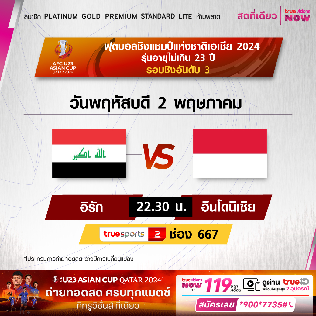 Iraq vs Indonesia เวลา 22.30-00.30 ทางช่อง TS 2 (667)