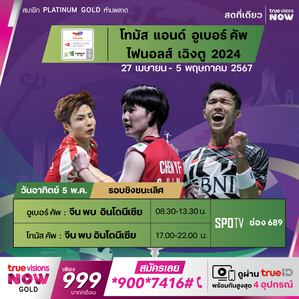 อูเบอร์ คัพ China Vs Indonesia เวลา 08.30 ทางช่อง SPOTV (689)