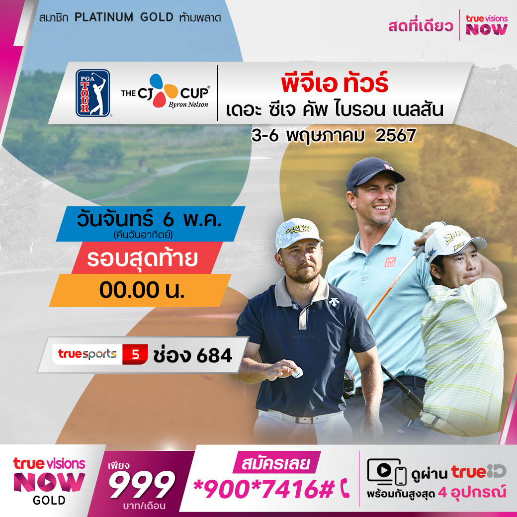 กอล์ฟ พีจีเอ ทัวร์ สัปดาห์นี้ไปกันที่รายการ เดอะ ซีเจ คัพ ไบรอน เนลสัน รายการที่จัดเพื่อเป็นเกียรติให้กับตำนานผู้ยิ่งใหญ่ของวงการ ที่สนาม ทีพีซี เคร๊ก แรนซ์ เมืองแม็คเคนนี่ รัฐเท็กซัส โดยมีเงินรางวัลรวมให้ชิงกันมากถึง 9,500,000 เหรียญสหรัฐฯ ร่วมลุ้นกันว่าใครจะเป็นแชมป์คนใหม่ สด เอ็กซ์คลูซีฟ ครบทุกรอบ ที่เดียวที่ ทรูวิชั่นส์