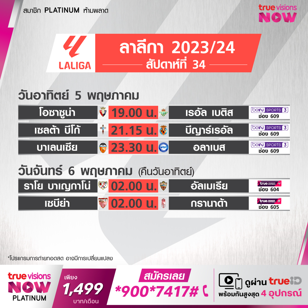 Sevilla vs Granada เวลา 02.00-04.00 ทางช่อง TPF 5 (605)