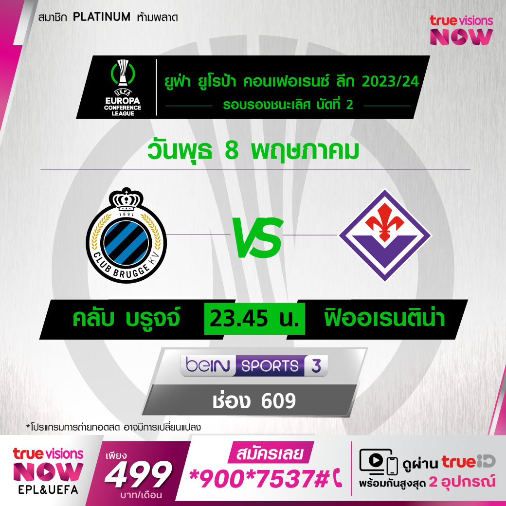 Club Brugge vs Fiorentina เวลา 23.45-01.45 ทางช่อง beIN 3 (609)